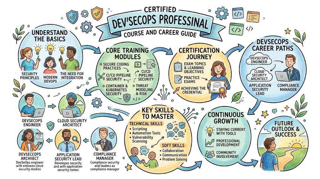 Software teams now deploy many times a day, across microservices, containers, and multiple clouds. Security can no longer sit outside this flow as a slow, separate step. If you want to build and run systems that are both fast and safe, you need DevSecOps skills.The Certified DevSecOps Professional program is designed exactly for that need. It helps working engineers and managers learn how to weave security into pipelines, infrastructure, and day‑to‑day engineering work, instead of treating it as an afterthought. In this guide, you will see what the certification covers, who should do it, how to prepare, and how it fits into long‑term DevOps, SRE, AIOps/MLOps, DataOps, and FinOps career paths.