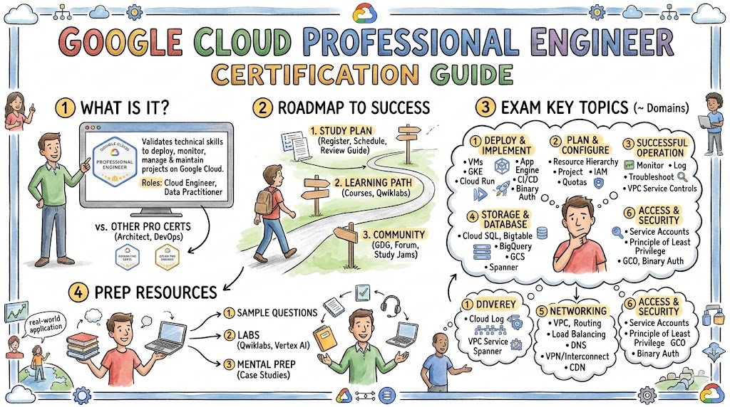 The Google Cloud Professional Engineer certification is a highly respected and globally recognized qualification in the field of cloud computing. Google Cloud is one of the leading platforms for deploying cloud applications and services, and professionals with Google Cloud certifications are in high demand. This guide will provide you with everything you need to know about the Google Cloud Professional Engineer certification, from what it entails to how to prepare and the benefits you can expect after earning it.Whether you’re a software engineer, a DevOps engineer, or an IT manager looking to enhance your cloud capabilities, this guide will set you on the right path toward achieving Google Cloud Professional Engineer certification.