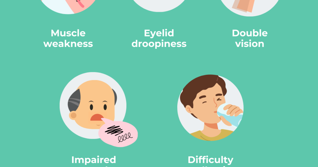 - Respiratory Muscle Weakness: This is the most serious symptom and can lead to a “myasthenic crisis,” a life-threatening condition where breathing becomes insufficient, requiring emergency ventilation.