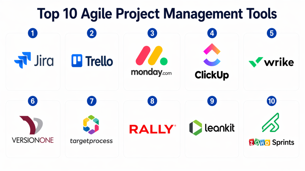 Agile Project Management Tools are essential for teams seeking transparency, iterative planning, and faster project delivery. The right tool depends on team size, workflow complexity, and integration needs. Lightweight platforms like Trello or Zoho Sprints suit small teams and freelancers, whereas Jira, VersionOne, and Wrike address enterprise-scale Agile portfolios. Prioritize workflow automation, reporting, ecosystem integration, and compliance when shortlisting. Start by evaluating 2โ3 tools with a pilot, ensuring alignment with your teamโs Agile practices, collaboration requirements, and security standards.