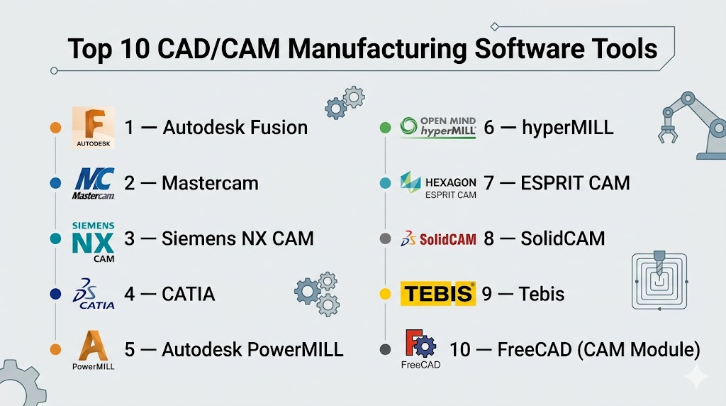 CAD/CAM manufacturing software has evolved into a powerful foundation for modern digital production, enabling faster design-to-manufacturing cycles and significantly improving precision and efficiency. While tools like Fusion offer an accessible, all-in-one approach for growing teams, enterprise platforms like Siemens NX and CATIA deliver unmatched depth for complex, large-scale operations. The key is not chasing the most powerful tool, but choosing the one that aligns with your workflows, machines, and long-term scalability needs. As automation, AI, and smart factory integrations continue to shape manufacturing, selecting a future-ready platform becomes critical. Start by shortlisting two or three tools, run real-world machining tests, and validate performance, integrations, and usability before making a final decision.