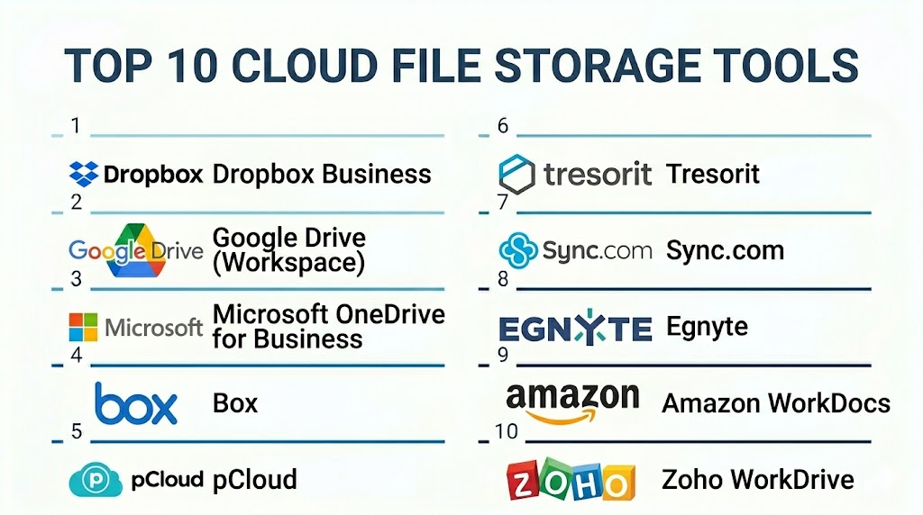 - Box, Amazon WorkDocs, Tresorit, and Egnyte deliver enterprise-grade security, hybrid cloud support, and advanced compliance.