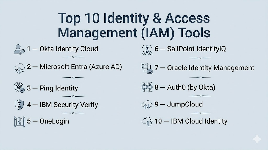 Identity & Access Management (IAM) platforms are essential for securing digital access, streamlining authentication, and maintaining compliance in modern IT environments. SMBs can leverage JumpCloud, OneLogin, and Auth0 for ease of deployment, while enterprises benefit from Okta, SailPoint, and Microsoft Entra for comprehensive governance and AI-driven security. Selecting the right IAM tool requires evaluating user volume, cloud and on-prem integrations, API coverage, compliance requirements, and scalability. Organizations should pilot solutions, optimize policies, and continuously monitor access risks to protect their digital assets effectively.