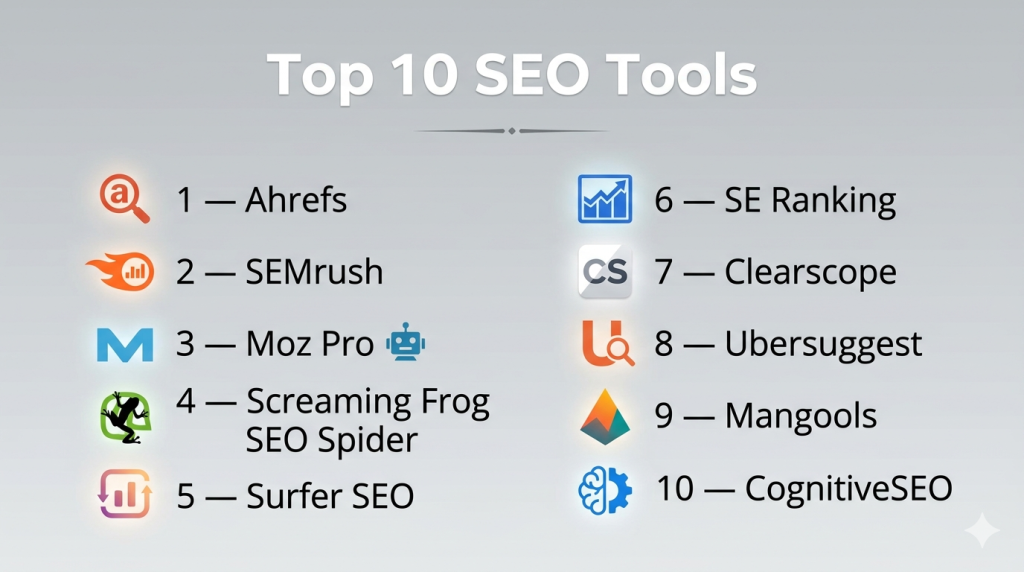 Modern SEO tools combine keyword research, technical audits, content optimization, and competitor insights into unified platforms. The best tool depends on team size, budget, content focus, and integration needs. Freelancers and small businesses benefit from Mangools or Ubersuggest, while mid-market and enterprise teams can leverage Ahrefs, SEMrush, or Surfer SEO for advanced analytics and team workflows. A practical approach is to shortlist 2โ3 tools aligned with your objectives, test features, and evaluate performance, integrations, and usability before committing. This ensures measurable improvement in search visibility, content strategy, and organic traffic growth.