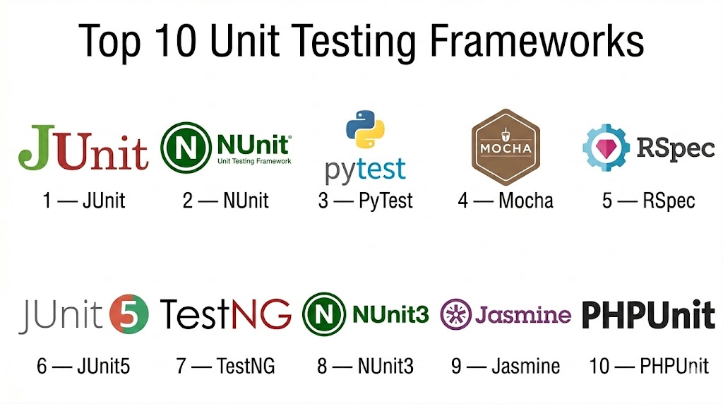 Modern use cases include automated regression testing in CI/CD pipelines, validating APIs and microservices, ensuring compatibility across multiple platforms, improving collaboration between QA and development teams, and accelerating development with TDD (Test-Driven Development) practices. Buyers should evaluate criteria such as language compatibility, ease of integration with CI/CD pipelines, support for mocking/stubbing, reporting capabilities, cross-platform support, community support, performance under scale, automation support, learning curve, and pricing.