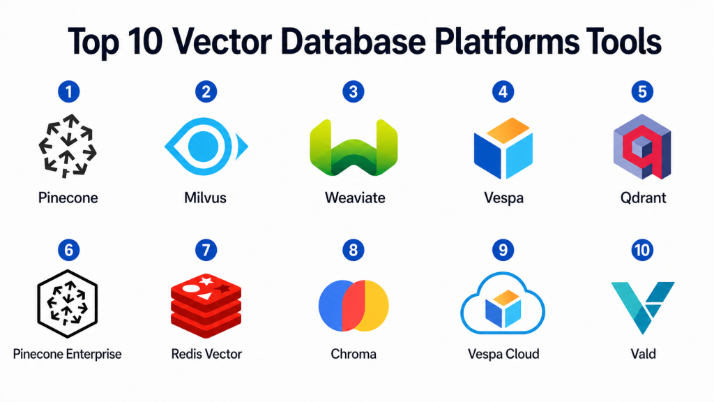 Vector Database Platforms are specialized databases designed to store, manage, and query high-dimensional vectors or embeddings efficiently. These databases are critical for AI and ML applications, including semantic search, recommendation engines, and image or text similarity matching. Unlike traditional databases, vector databases focus on similarity searches using advanced algorithms, enabling real-time retrieval of the most relevant results for AI-powered use cases.