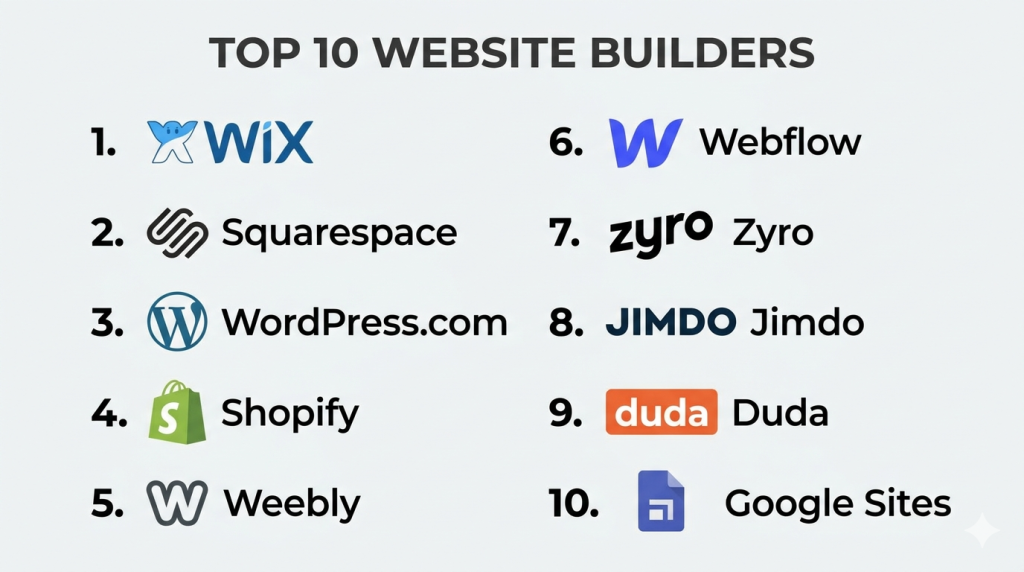 - Premium / Feature-rich: Webflow, Shopify, Squarespace